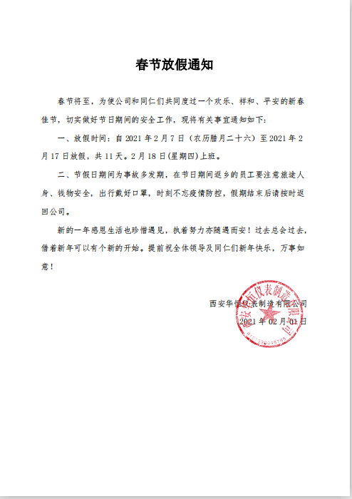 2021華恒儀表春節(jié)祝福 放假及上班通知