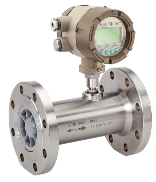 ?、贉u輪流量計(jì):當(dāng)流體流經(jīng)渦輪流量傳感器時(shí),在流體推力作用下渦輪受力旋轉(zhuǎn),其轉(zhuǎn)速與管道平均流速成正比,渦輪轉(zhuǎn)動(dòng)周期地改變磁電轉(zhuǎn)換器的磁阻值,檢測(cè)線圈中的磁通隨之發(fā)生周期性變化,產(chǎn)生周期性的電脈沖信號(hào)。在一定的流量(雷諾數(shù))范圍內(nèi),該電脈沖信號(hào)與流經(jīng)渦輪流量傳感器處流體的體積流量成正比。