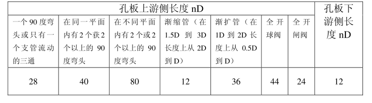 ?。?) 孔板上下游所需直管長度不得小于以下要求: