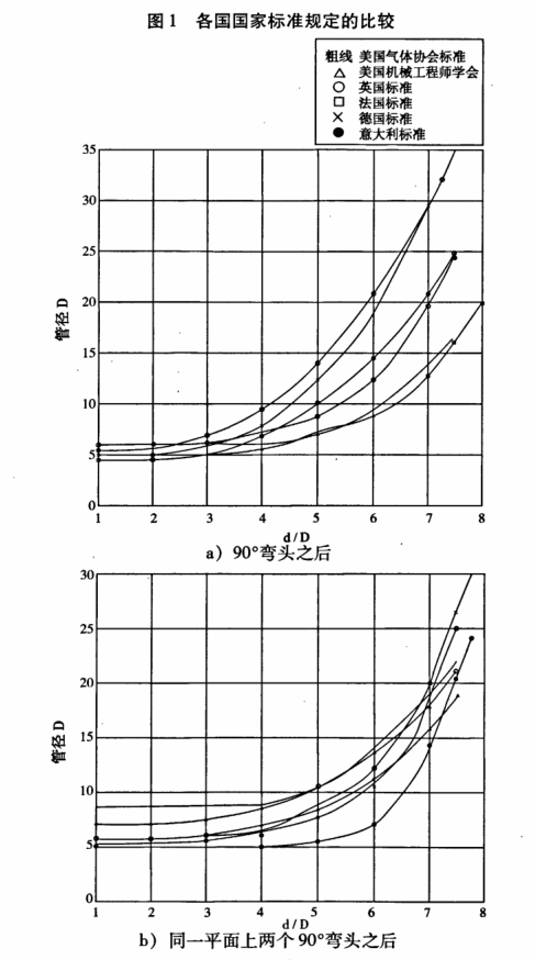 美國(guó)氣體協(xié)會(huì)(AGA)3號(hào)報(bào)告參考文獻(xiàn)記錄了美國(guó)流量工作者1926年在天然氣輸氣站上對(duì)孔板流量計(jì)進(jìn)行過(guò)阻流件干擾試驗(yàn),自此以后人們不問(wèn)斷地進(jìn)行大量的試驗(yàn)研究,在國(guó)際標(biāo)準(zhǔn)ISO5167第一版(1980)頒布之前,美國(guó)和歐洲各國(guó)國(guó)家標(biāo)準(zhǔn)或行業(yè)標(biāo)準(zhǔn)皆把節(jié)流裝置必要的直管段長(zhǎng)度規(guī)定作為標(biāo)準(zhǔn)的主要內(nèi)容之一。國(guó)際標(biāo)準(zhǔn)化組織(ISO)制訂第一部節(jié)流裝置國(guó)際標(biāo)準(zhǔn)時(shí)把各國(guó)的成果引入標(biāo)準(zhǔn),期望直管段長(zhǎng)度規(guī)定能在國(guó)際上取得一致,意料不到的是,做為國(guó)際標(biāo)準(zhǔn)主要起草國(guó)之一美國(guó)卻對(duì)ISO5167:1980投了反對(duì)票。在IS05167:1980(第一版)前言中寫(xiě)道: