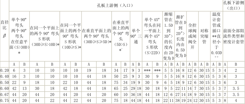 2.">最小直管段長(zhǎng)度是指孔板的上下游阻流件與孔板之間的長(zhǎng)度,該長(zhǎng)度是從最靠近的彎頭或三通的曲面部分下游