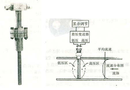 威力巴流量計(jì)是一種插入式流量測量儀表。在管道中插入一根威力巴傳感器 ,傳感器在高、低壓區(qū)有按一定規(guī)則排列的多對 一般為三對取壓孔。分別測量流體的全壓力包括靜壓力和平均速度壓力Pl和靜壓力P2。將P1和P2 分別引入差壓變送器 , 測量出差壓 △P=P1-P2, △P反映流體平均速度的大小 , 以此可推算出流體的流量。