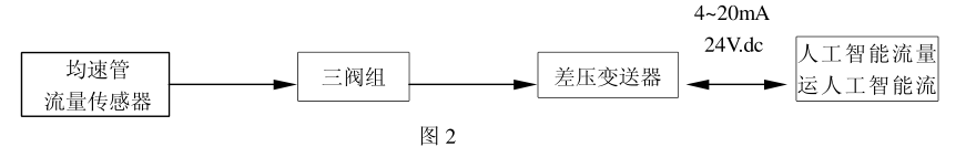 一體化智能型均速管流量計(jì)由一體化均速管流量變換器和人工智能流量運(yùn)算顯示器兩部分組成。其中一體化均速管流量變換器由均速管流量傳感器亦稱阿紐巴Annubar流量傳感器、三閥組板和差壓變送器構(gòu)成。測(cè)量原理框圖見圖 2。